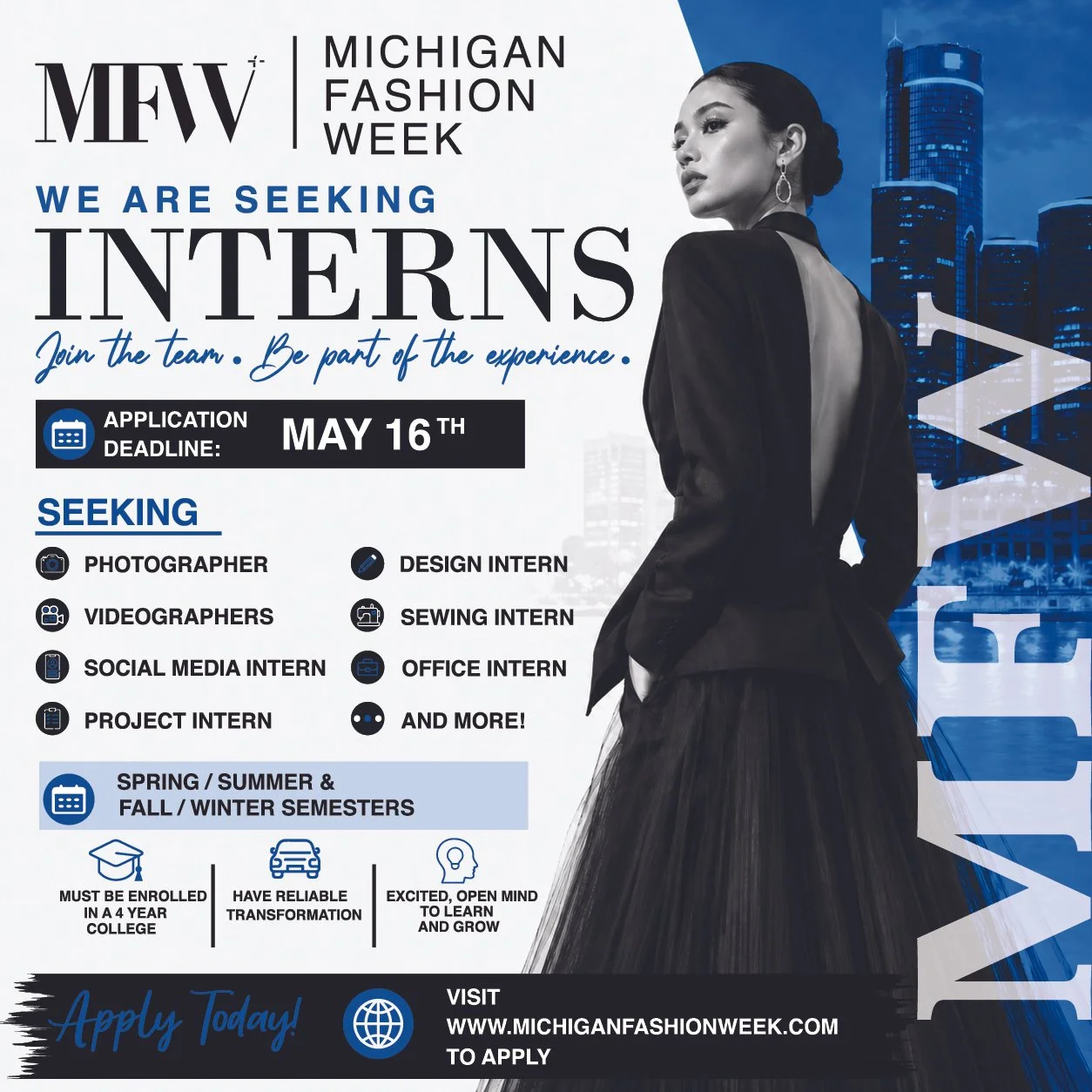 Becoming an intern with Michigan Fashion Week is an opportunity to step inside one of the Midwest’s leading fashion platforms and gain real, hands-on experience in the industry. Interns work closely with a dynamic team on event production, designer relations, marketing, and behind-the-scenes operations, all while building valuable connections with creatives, brands, and professionals. It’s a fast-paced, collaborative environment designed for those who are passionate about fashion, eager to learn, and ready to contribute to impactful, high-level events.